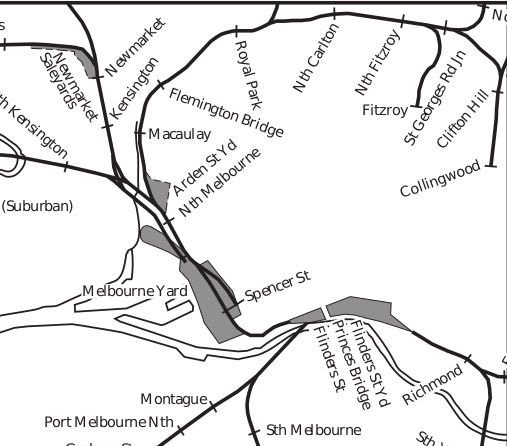 In 1890, suburban trains did not run directly from the City (Melbourne) to Heidelberg. They took a circuitous route, starting from Spencer Street (we currently call Southern Cross) travelling north towards Royal Park, then taking the old inner circle line through North Carlton, North Fitzroy, Clifton Hill and south to Collingwood.